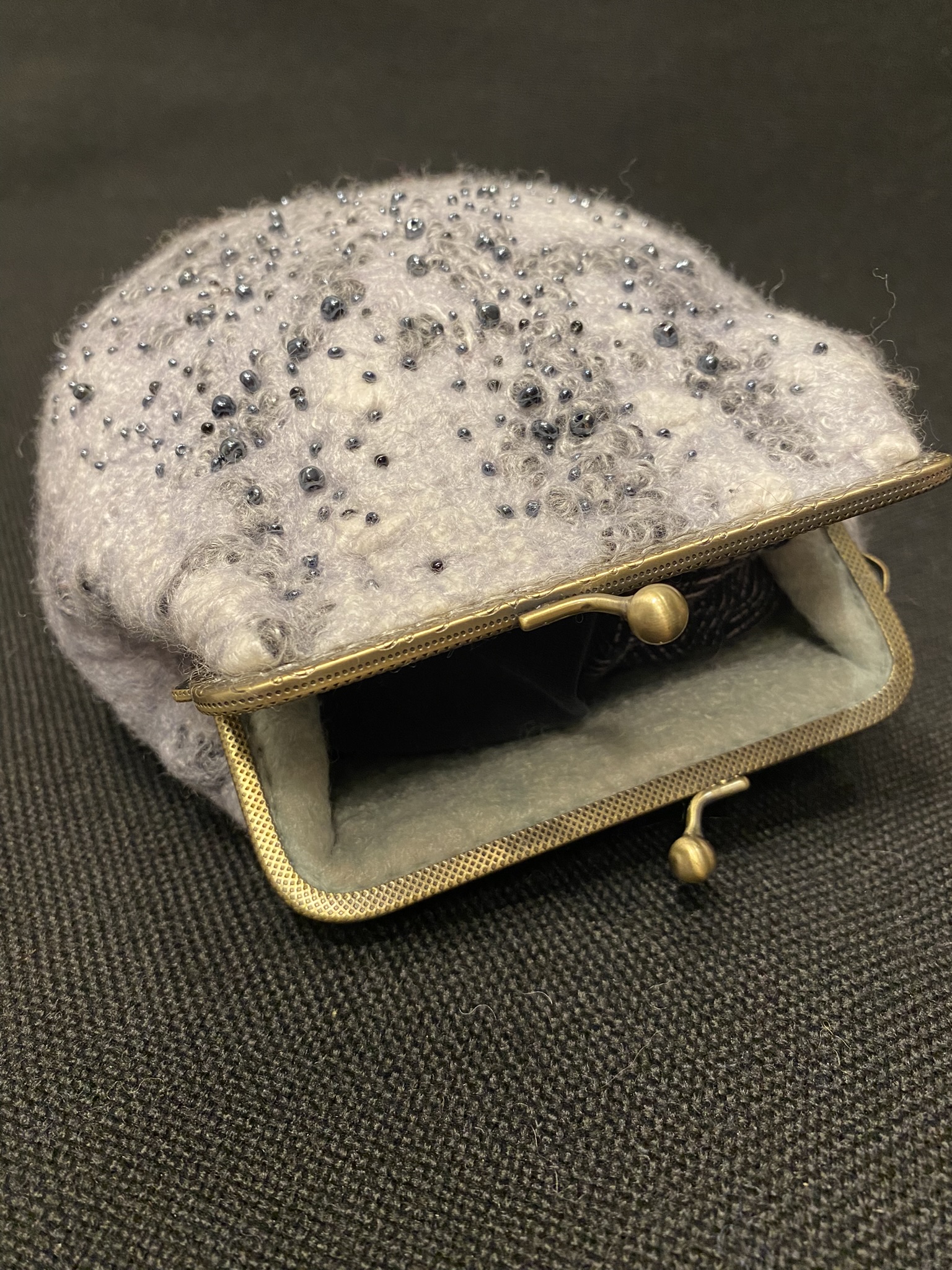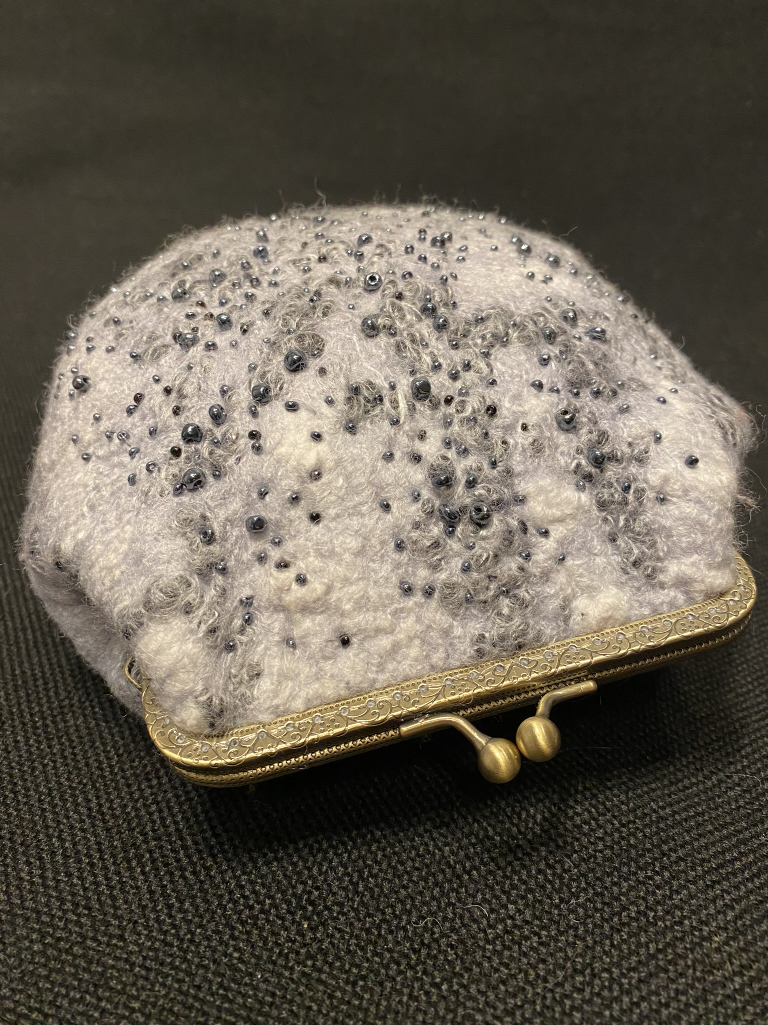 Grey purse with black glossy beads